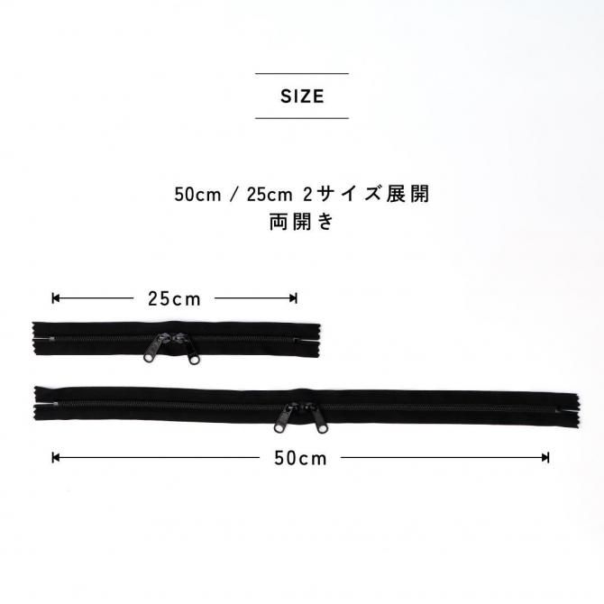 YKK5コイル 頭合ファスナー 25cm 50cm オールブラック